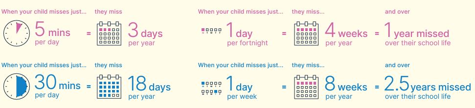 As well as the importance of having a good, consistent attendance record at school we also encourage you to ensure your child/ren arrive at school on time. We have been noticing a few more children are arriving late at school and often these are repeated late arrivals.