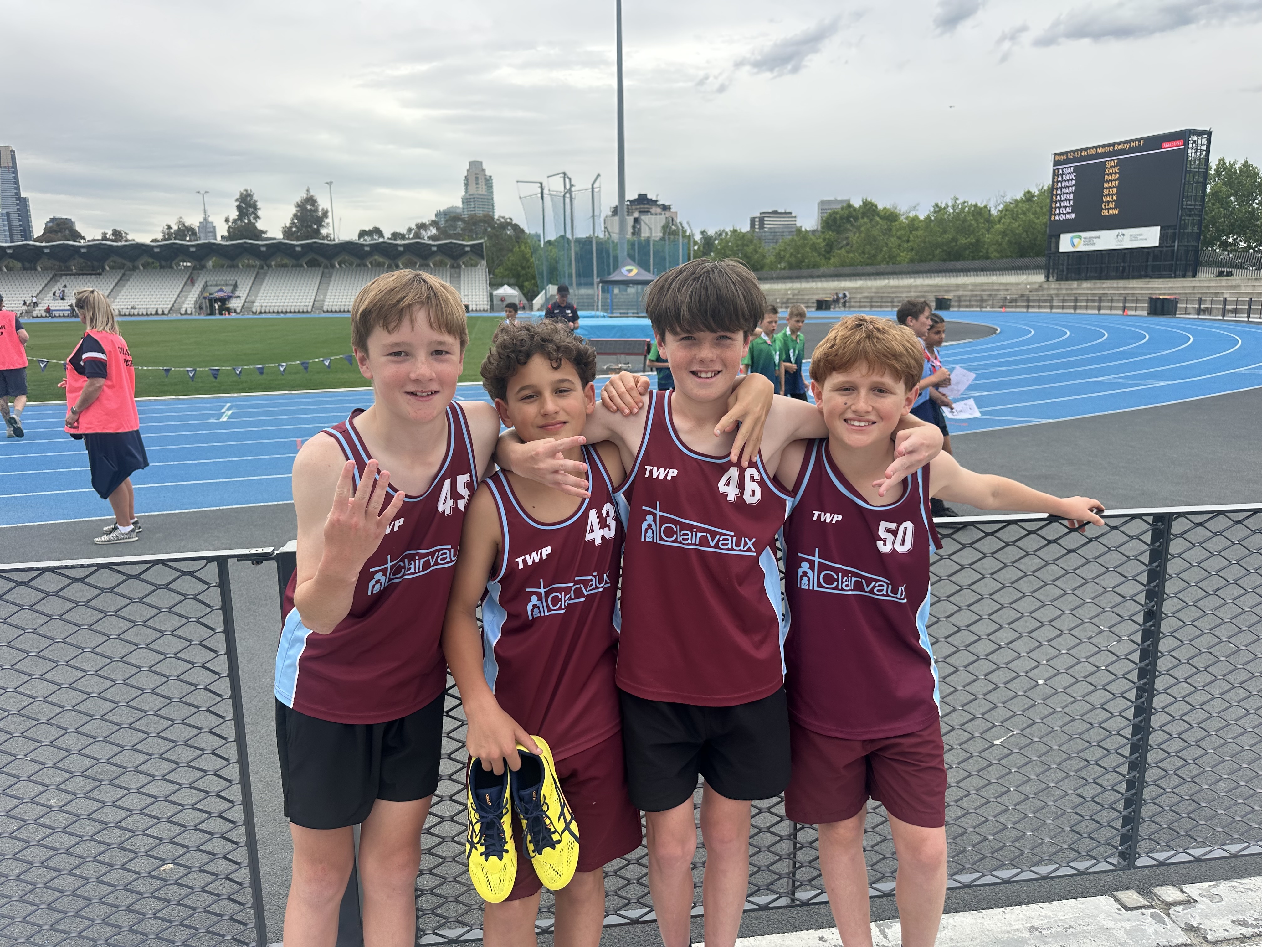 A huge congratulations to these boys for representing Clairvaux and their age group in the relay race. They placed third in their first race, which secured them a spot in the state final, an incredible achievement in itself. In the final, they finished fourth, making them fourth overall in the entire state of Victoria.