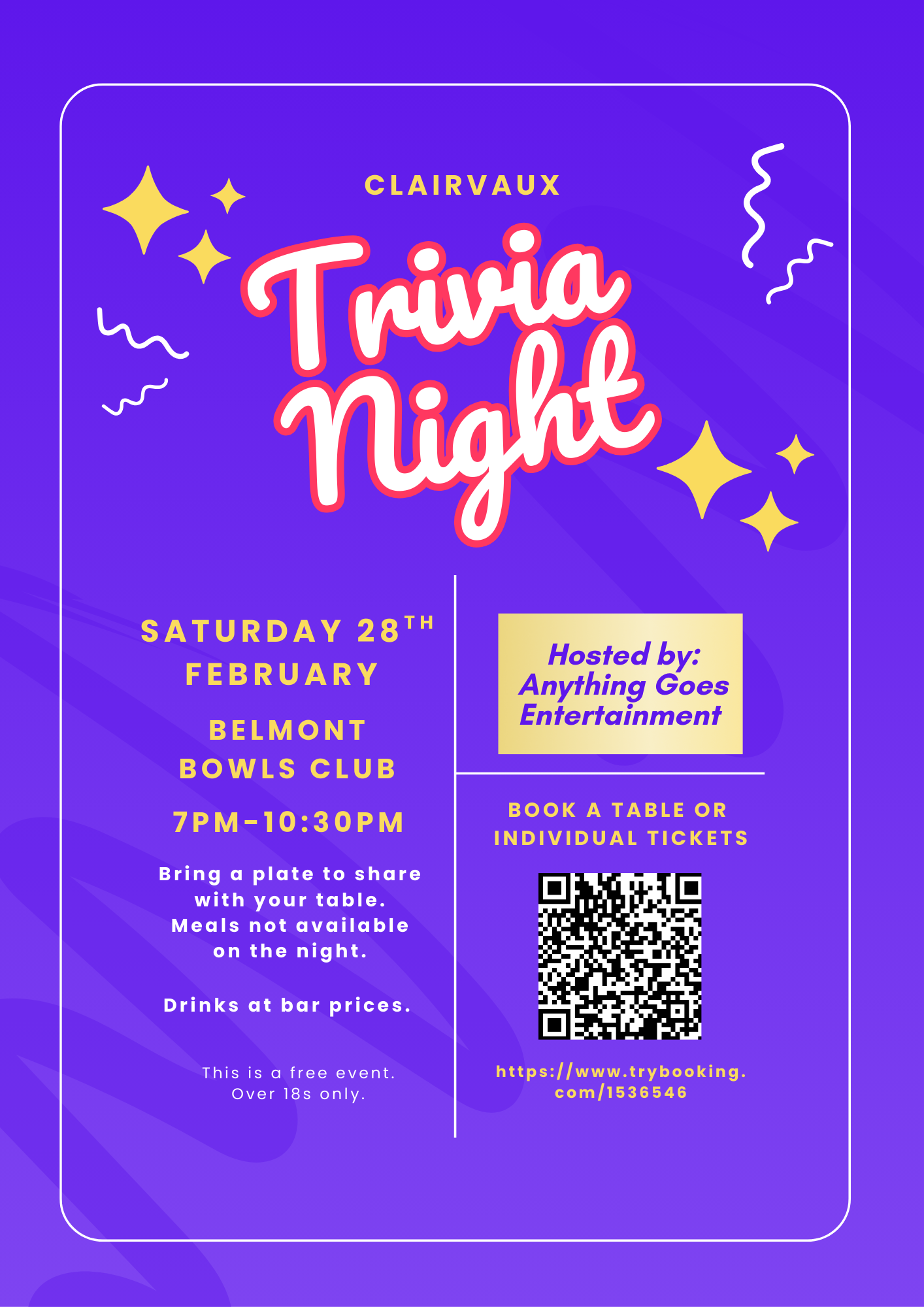 We are excited to announce our first event of the year — the Clairvaux Trivia Night!