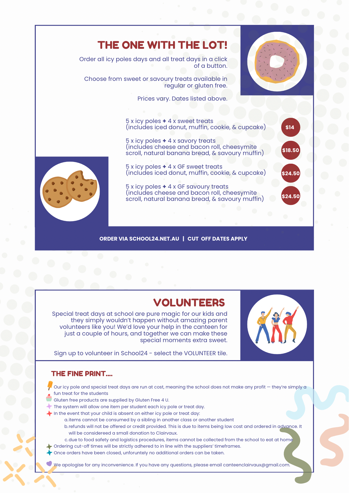 | Week 6 Monday 25th May - student free day - staff PD Wednesday 27th May- Eucharist Family Faith Night Year 4 - 6:30pm Please note change of date. Friday 29th May - Yr 6 Winter Lightning Prem - Clairvaux sports uniform only to be worn |