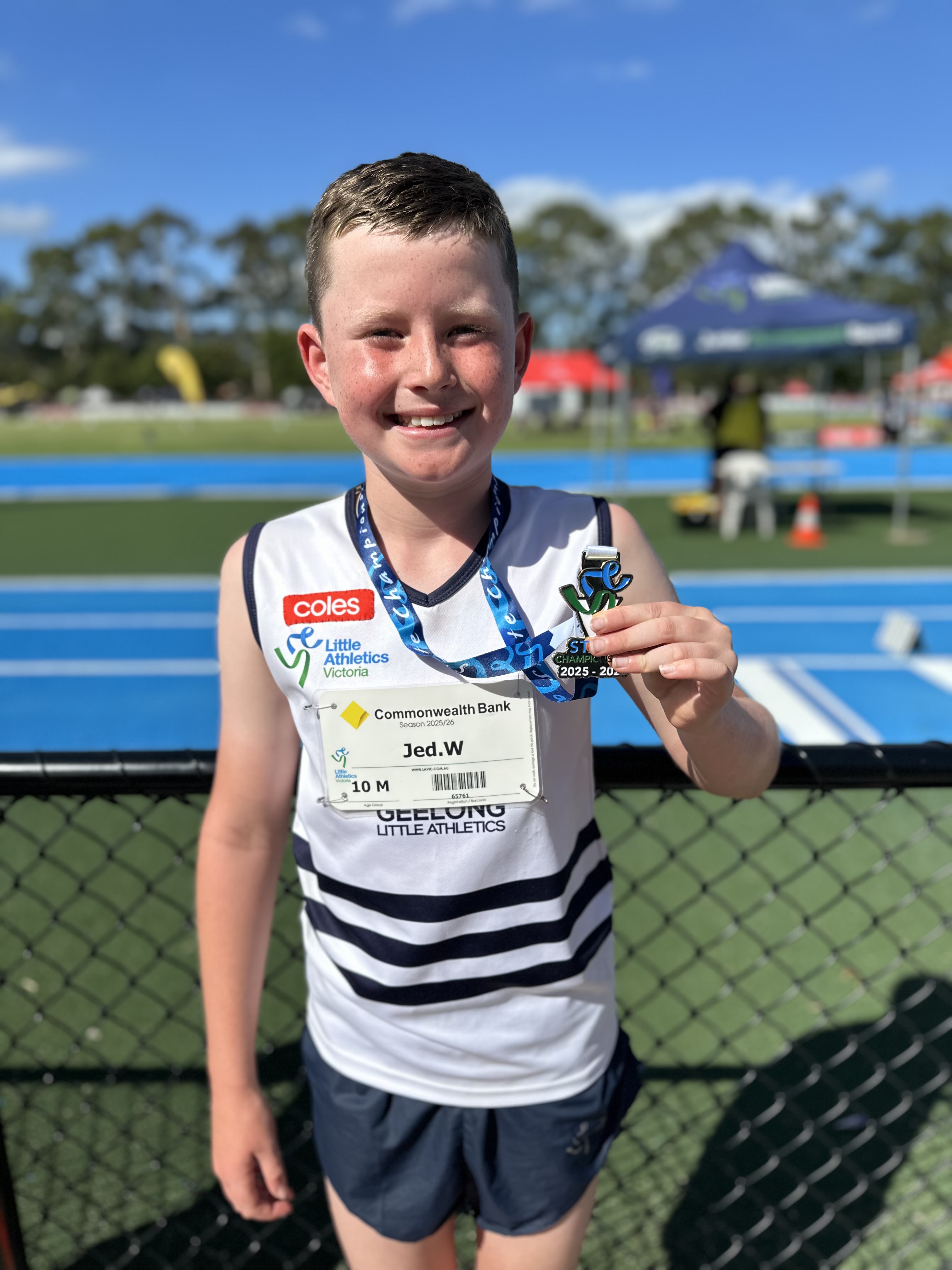After a stellar performance at the Regional championships back in February, Jed Wilkinson headed to the Little Athletics Victoria State Championships in Knox to compete against the best in the state. Competing in the U10 Boys High Jump on Sunday, Jed didn't just win the gold medal; he made history by equalling the Victorian State record.