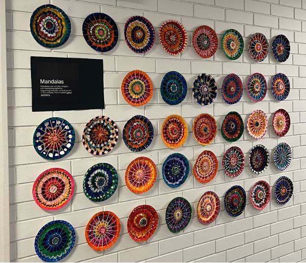Students were able to apply these understandings to create a mandala, both using the technique of weaving and painting.