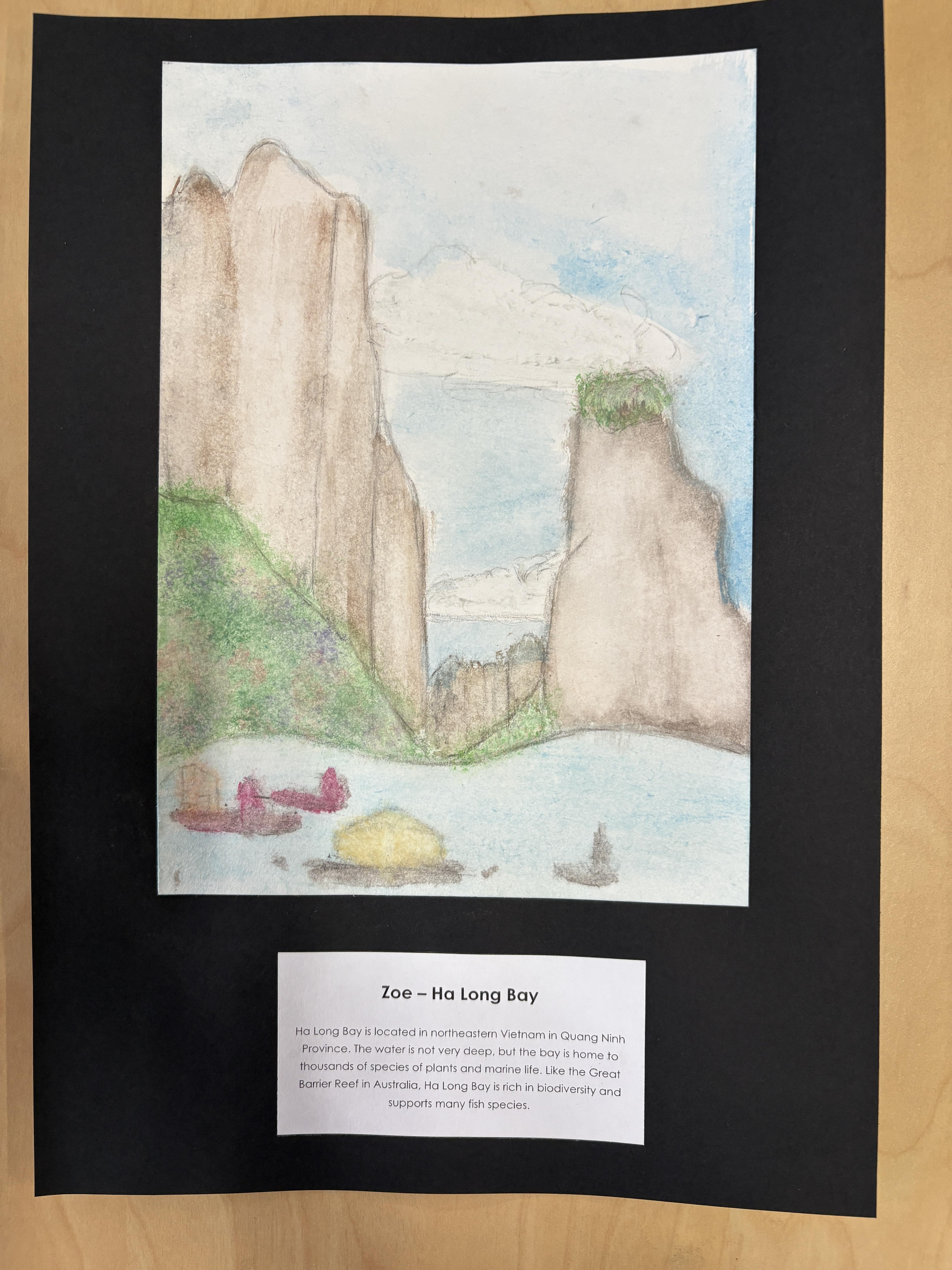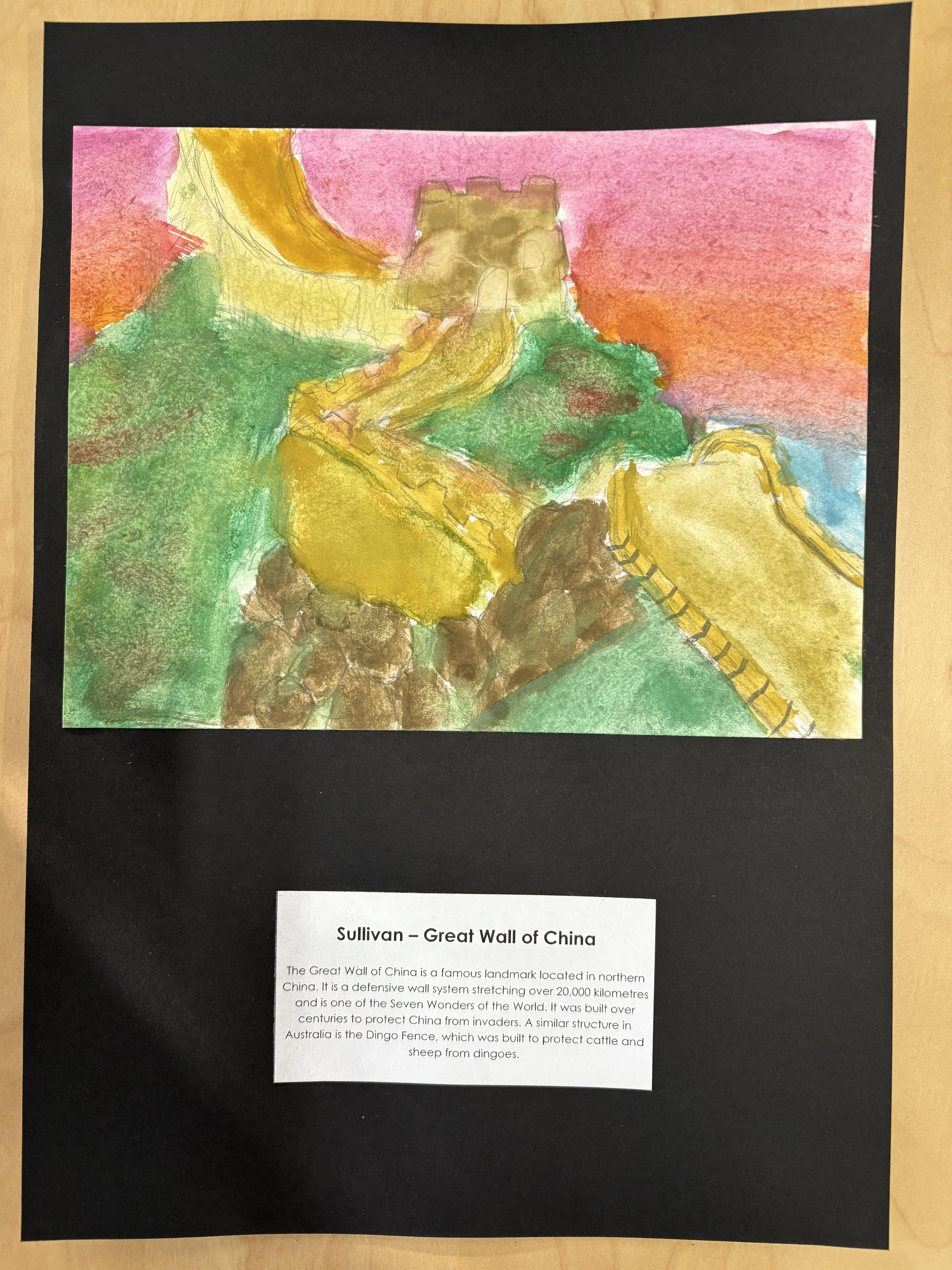 This term, our Year 6 students have been exploring a combined Literacy and CCed unit focused on Geography. They've been comparing Australia to countries around the world, with a recent focus on famous landmarks across Asia. Students enjoyed discovering the stories behind these iconic places and comparing them to well-known Australian landmarks. As a culminating activity, each student selected a landmark to research, created a beautiful artwork of it, and wrote a short blurb to accompany their piece. We’re so proud of their creativity and growing global awareness!