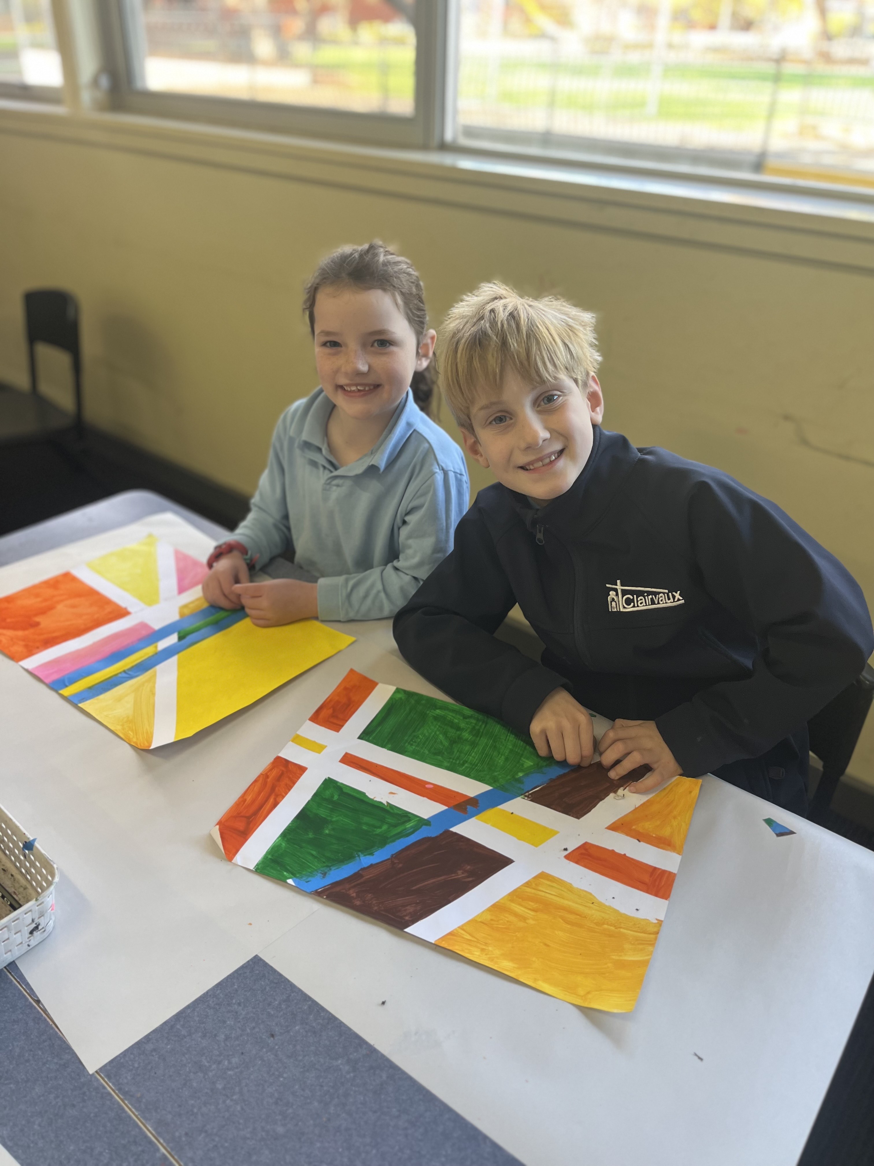 As part of their inquiry into the past and present, the Year One students have taken a historical journey into the world of Mid-Century Abstract Art (1950s–1960s). In Visual Arts, they have explored the simplicity and clarity that defined this time—clean lines, bold shapes like circles and squares, and an appreciation for uncluttered design. Using techniques such as tape art, they’ve created artworks that reflect the aesthetics of the era, while applying their understanding of the art elements line and shape.